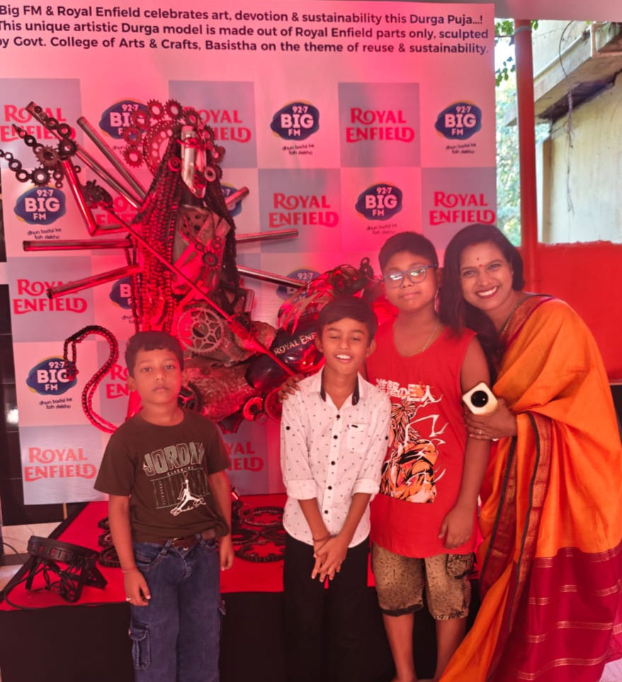 As part of the campaign, Durga Puja celebrations spread across various apartment complexes and city hotspots, culminating in a one-of-a-kind artistic marvel — an eco-friendly Durga idol crafted entirely from spare parts of Royal Enfield motorcycles, displayed at Maligaon Kalibari Durga Mandap, near the Northeast Frontier Railway Headquarters.